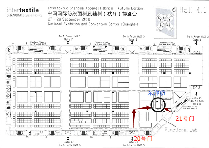 東洋紡展位位置圖 4.1號館,臨近20號門和21號門
