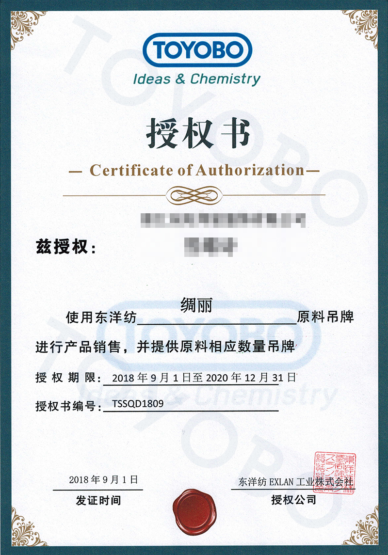 東洋紡會提供商標授權書給用于對應產品的品牌。